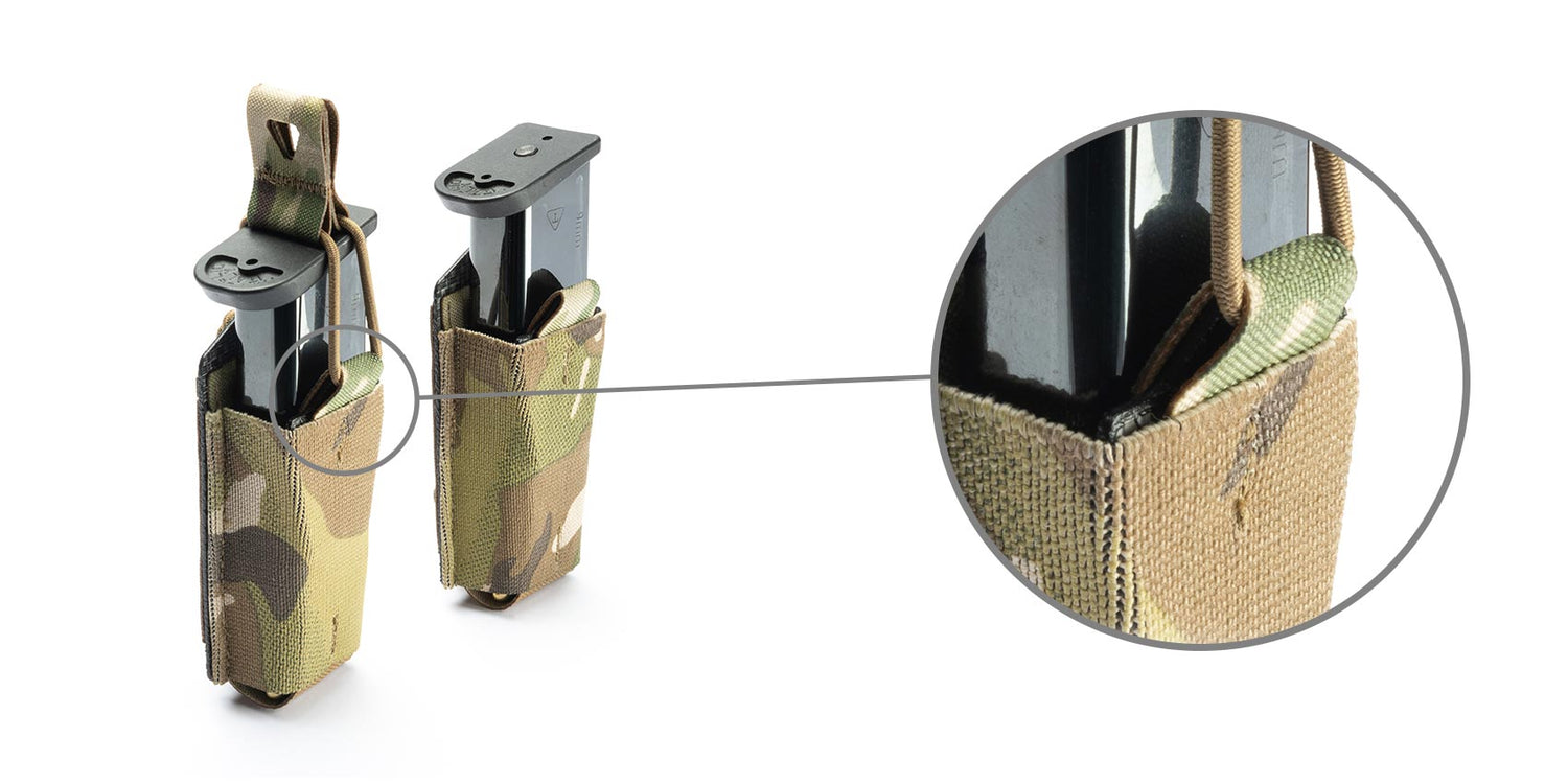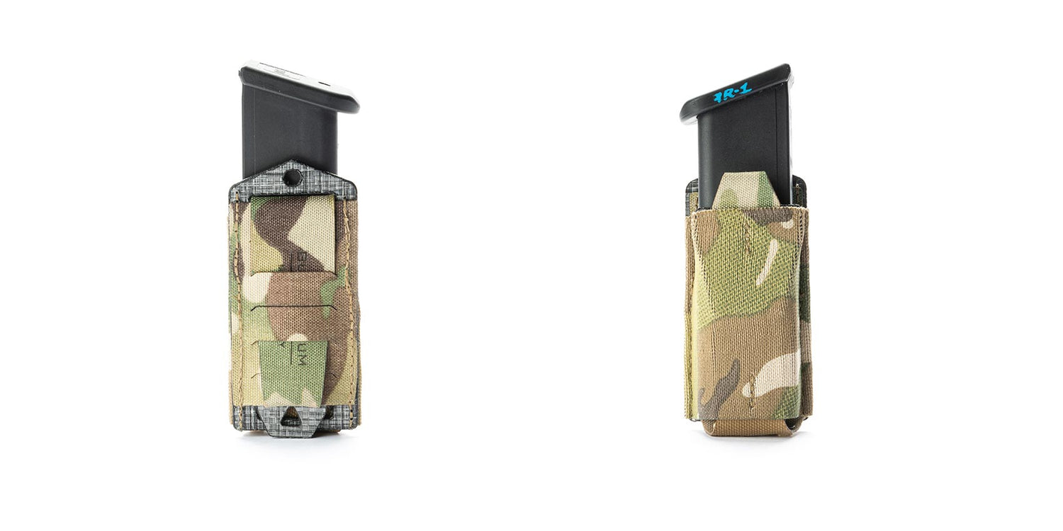 Also available for rifle mags, this innovative magazine pouch combines the versatility of elastic webbing soft-goods with the structure and easy-to-use properties of "kydex-based" pouches.