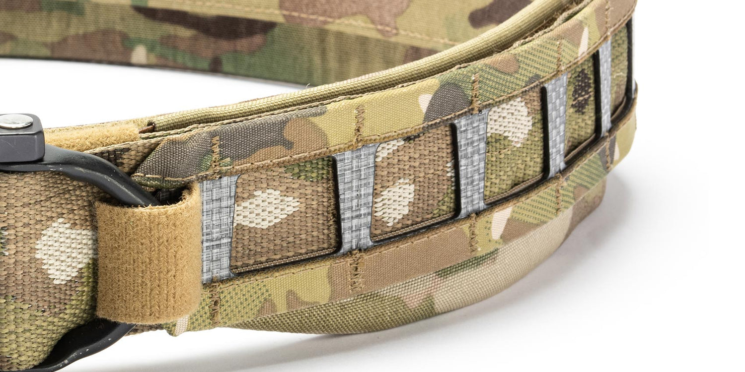 The removable and replaceable PADDING creates a soft cushion between the outer belt and the operator's body, drastically increasing comfort during use and adding space between the MOLLE locking system and the body.