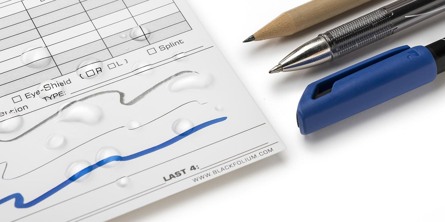 The most common procedure to make the casualty cards water-resistant is to use laminated paper. This method has a downside: laminated paper can be compiled exclusively with a marker. Markers, on their side, are sensitive to atmospheric conditions (try to write on a wet plastic surface) and the heat that is generated inside the IFAK (especially in desert environments), exposing users to the risk of malfunctions when the marker is needed.
