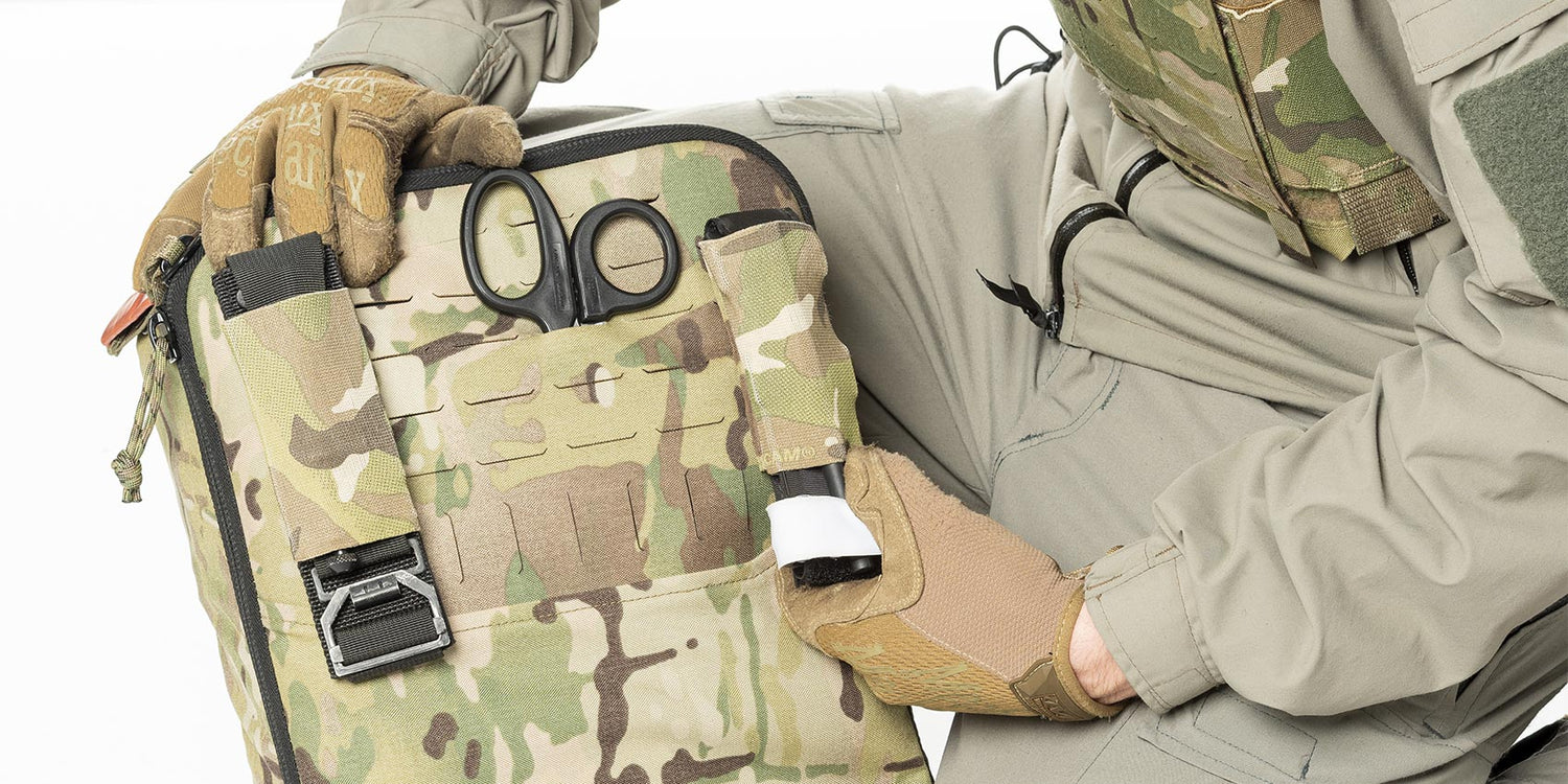 The tourniquet represents the first life-saving tool to prevent massive blood loss. For this reason, we developed the slimmest and simplest pouch to carry it. Thanks to its innovative design, it can be installed both horizontally and vertically on several platforms.