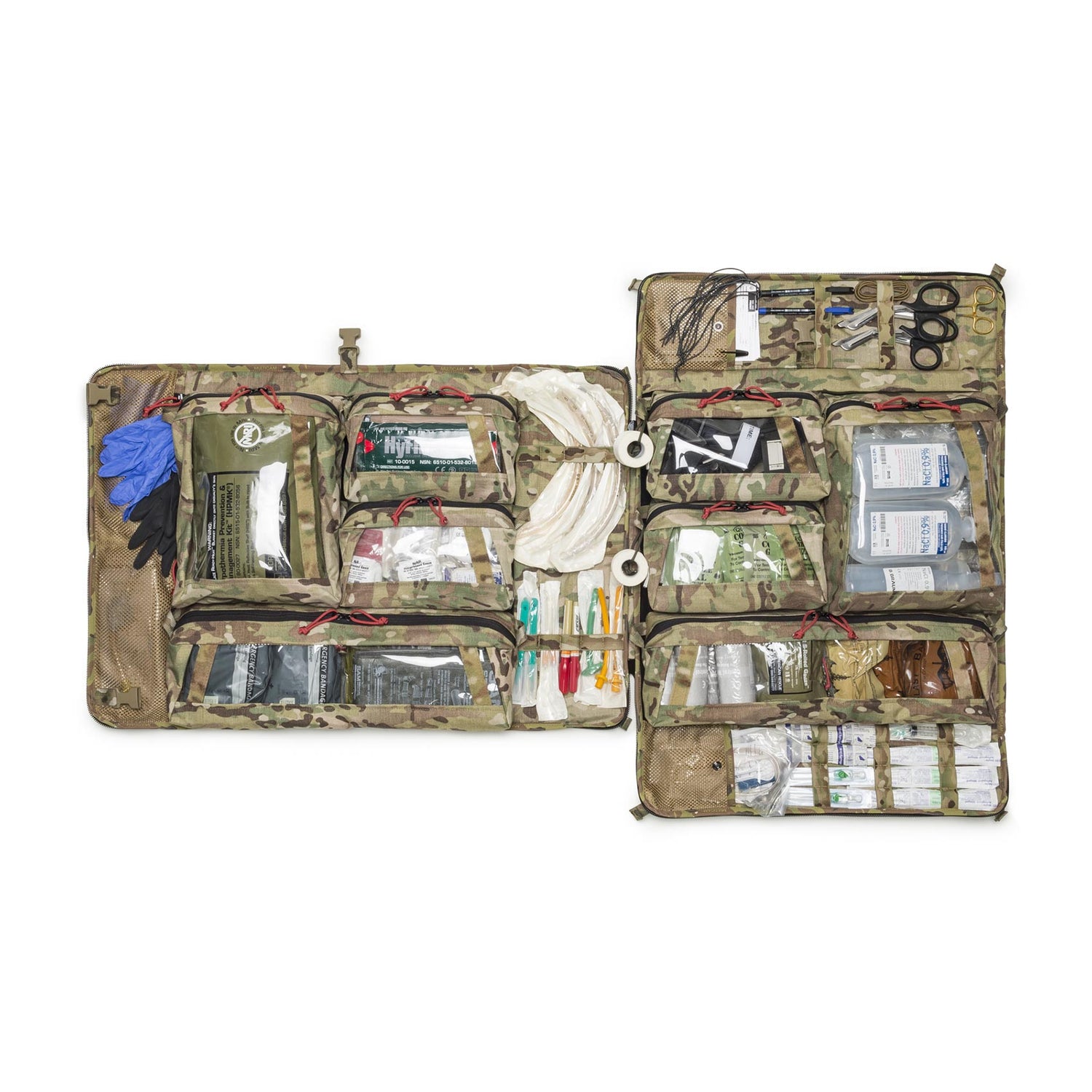 The Trauma Sheet Bag was designed to store, organize and transport all the medical supplies needed to set-up a CCP (Casualty Collection Point) or/and to set-up a MEDEVAC/CASEVAC vehicle. The several mounting points and the possibility of complete internal pouches customization make the bag adaptable to all operative scenarios.